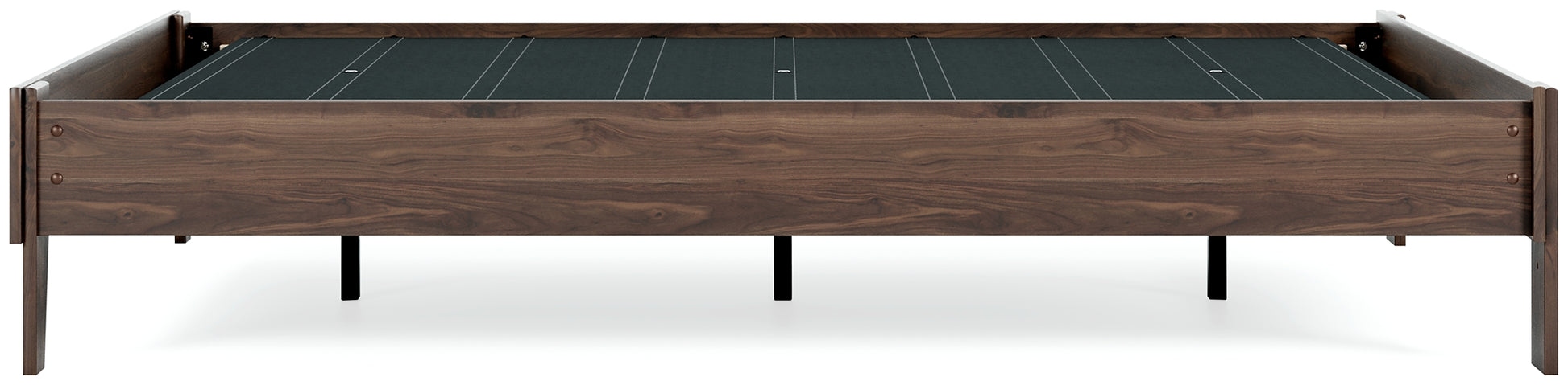 | Details | Queen platform bed (does not include headboard), Made with engineered wood (MDF/particleboard/plywood) and decorative laminate for the right balance of affordability and durability, Rich brown finish over replicated walnut wood grain with authentic touch, Bed does not require additional foundation/box spring; accommodates most zero clearance adjustable bases, Mattress available, sold separately, Assembly required | |