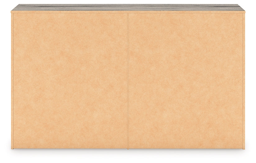 Casually cool style and lots of storage go hand in hand with this dresser. A weathered brown finish over replicated oak grain creates an easygoing vibe, setting the scene in your restful retreat. Clean lines and modern handles provide a fuss-free look. And the dresser's six roomy drawers give you plenty of space for stowing away clothes and more.